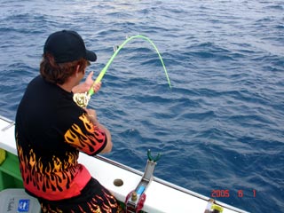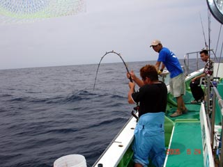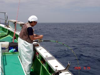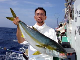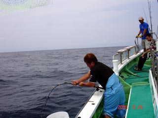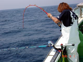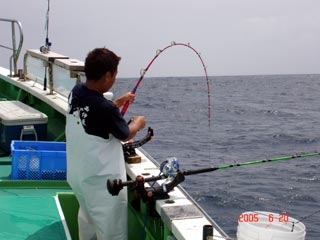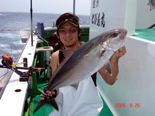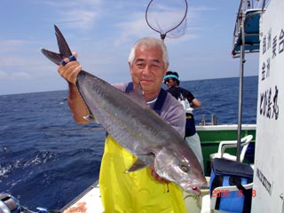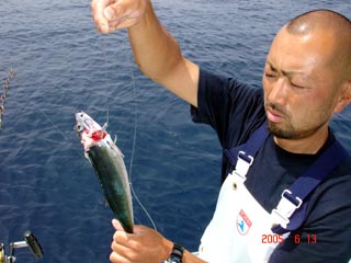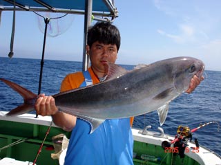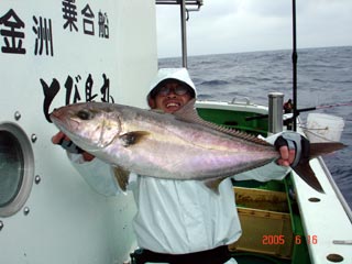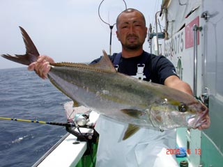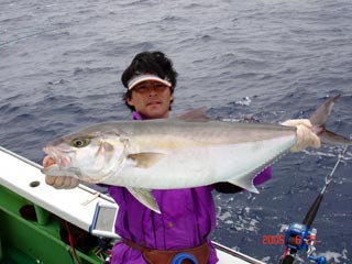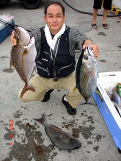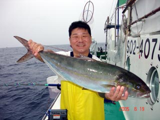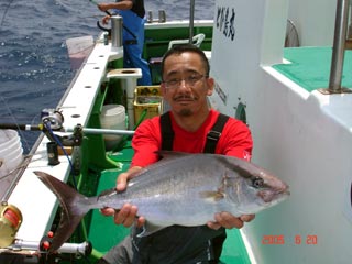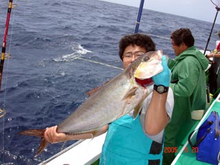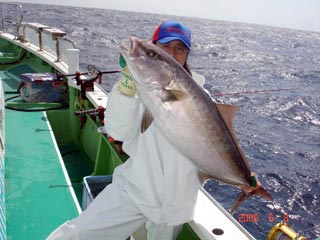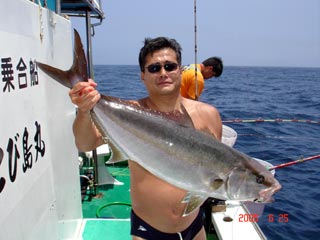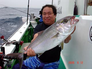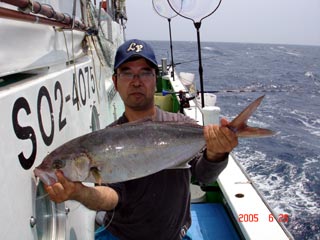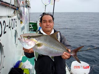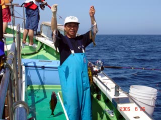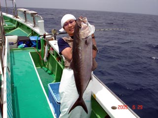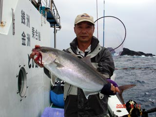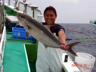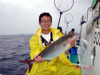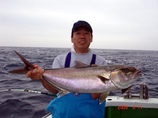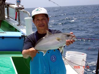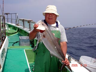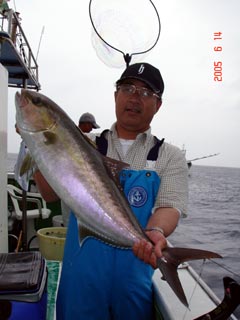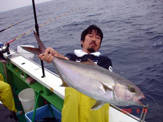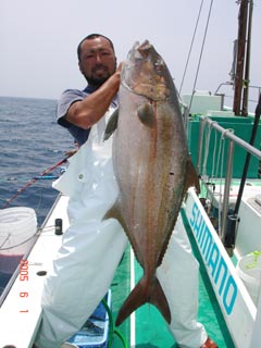 6/04銭洲 丹野氏のカンパチGETシ-ン! やったー(^o^)丿