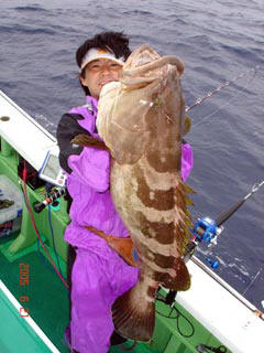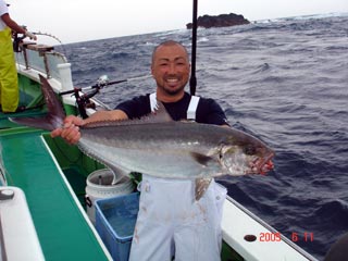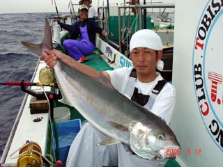 6/08銭洲 東京とび島会 小倉会長 カンパチ6.4kg さすがです(ーー;)