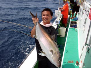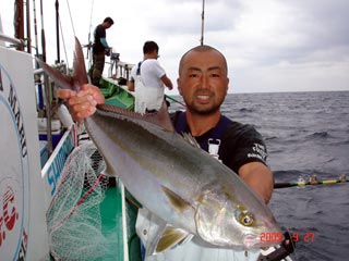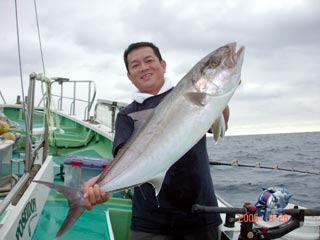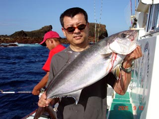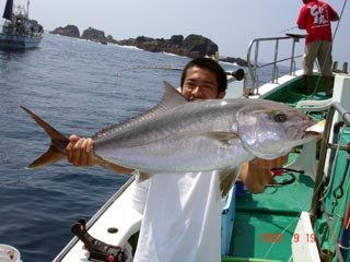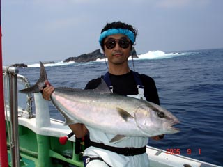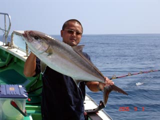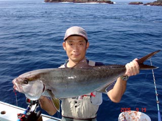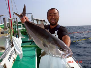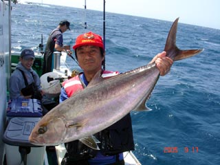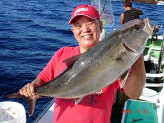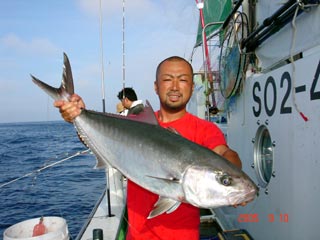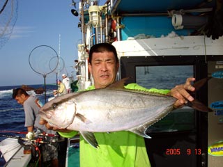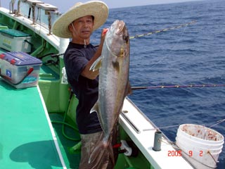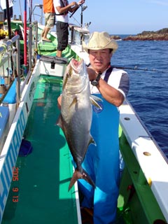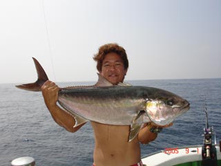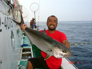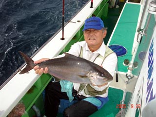 9/01銭洲 渋谷サンスイ船釣り館 青木氏 カンパチ8.8kg 久々の銭洲でGET! |