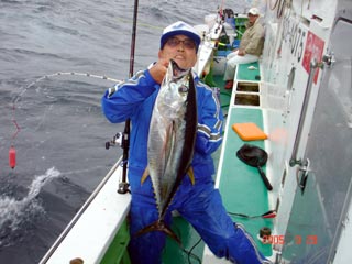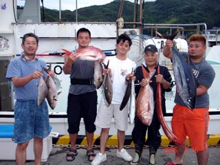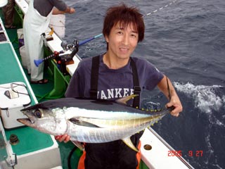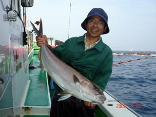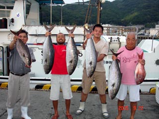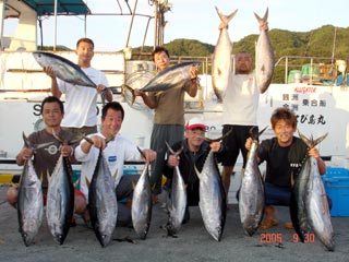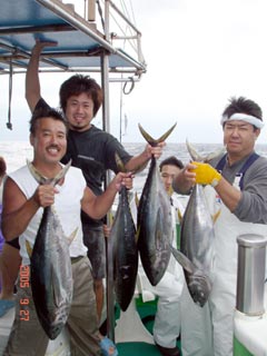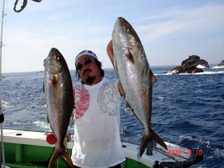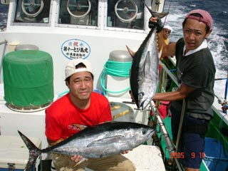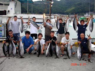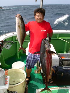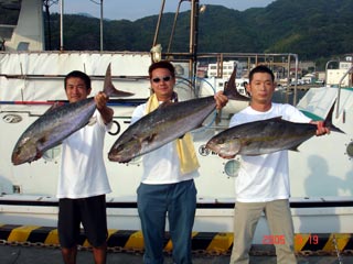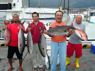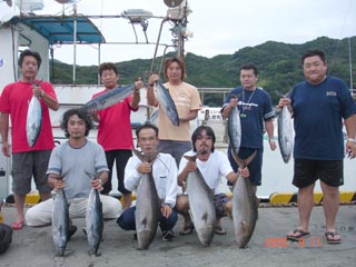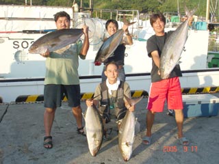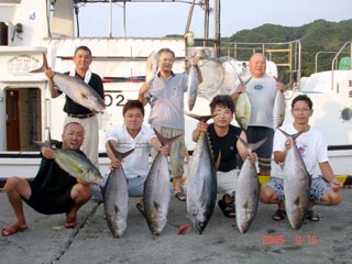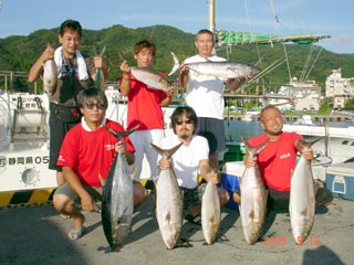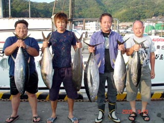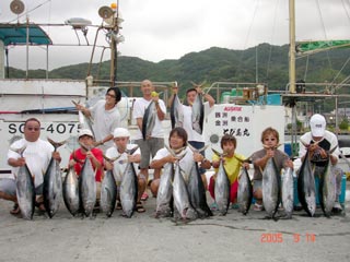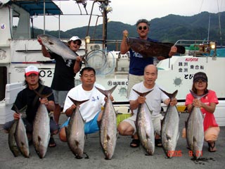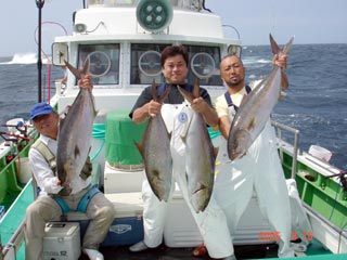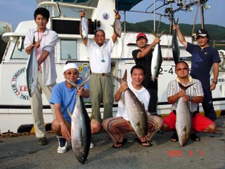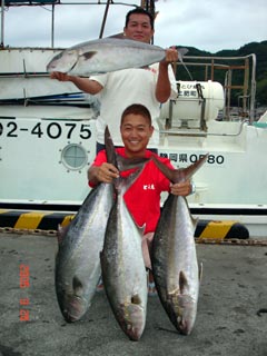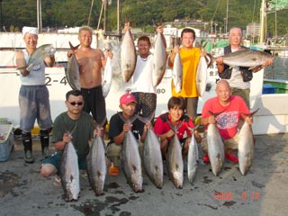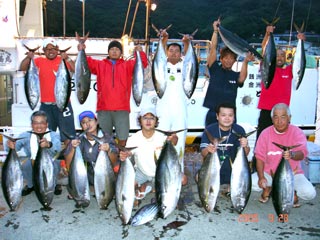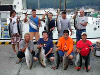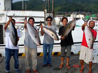 9/03銭洲 前列右~ 杉本氏 カンパチ9.75kg 中村氏 カンパチ8.45kg 丸山氏 キハダ10.7kg 後列右~、水村氏 ツムブリ4.5kg 大場氏 ツムブリ3.95kg 丹野氏 キリカン1.15kg カツオ 門倉氏 ツムブリ3.9kgです!