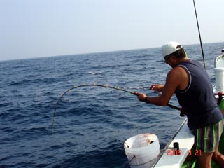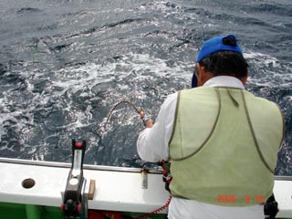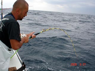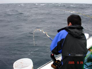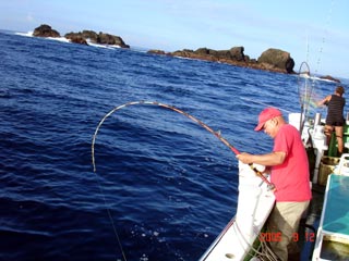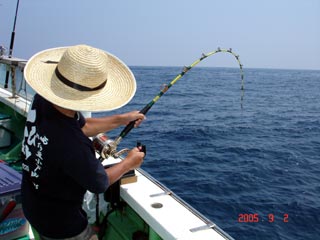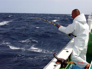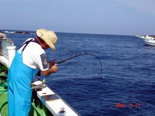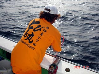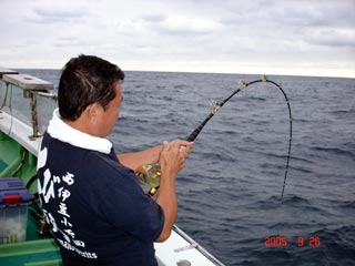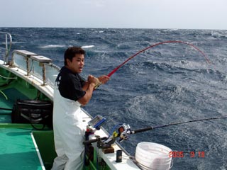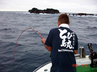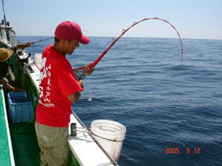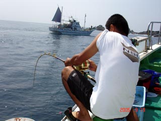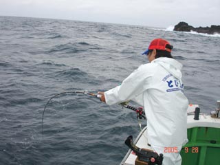 9/19銭洲 元吉丸 坂口氏のファイトシ-ン 大胆なスタンディングファイトです! ロッド:工房剛樹 SS18 リ-ル:ティアグラ20