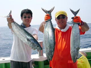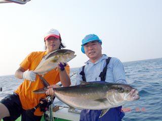 9/02銭洲 右 田中氏 左 市川氏 今回はハガツヲですが、次回はカンパチGETします!
