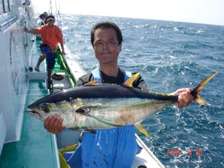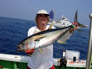 9/03銭洲 沼津市 丸山氏 キハダ10.7kg ハリス8号でGET!!(ーー;)