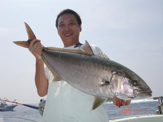 9/03銭洲 男! 杉本! カンパチ9.75kg 柳田さん! 負けませんから<`~´>!