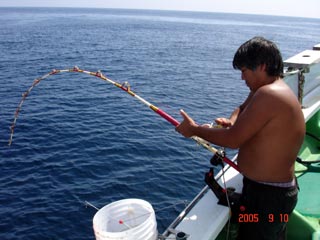 9/18銭洲 黒木氏のファイトシ-ン カンパチにのされてます(>_<) 竿:エイテック
