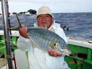 9/01銭洲 練馬区 永山 茂氏 カンパチ10.7kg 剛樹 繁くん!ついて来れるかな(^。^)ほほほっ