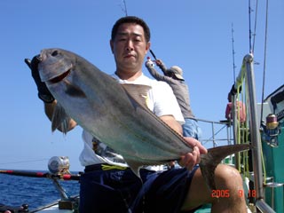 9/02銭洲 東京都 鈴木榮一氏 カンパチ6.8kgGET! ロンドンの『みなみチァン!一馬君!』 見たか(^。^)!また釣ったぞ(^o^)丿 中溝さん!ニュ-ヨ-クの中村さん!次回は負けないよ!