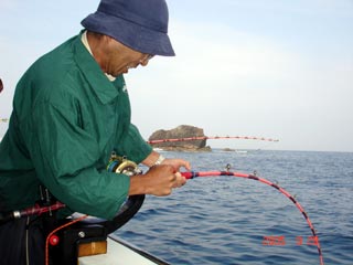 9/02銭洲 裸の王様 宮城新吾氏のファイトシ-ン 自作ロッド!活躍してます!