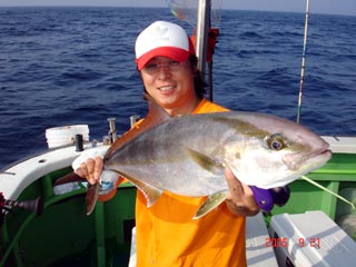 9/12銭洲 健司船長!やりましたよ! カンパチ7.8kg!頑張ります!