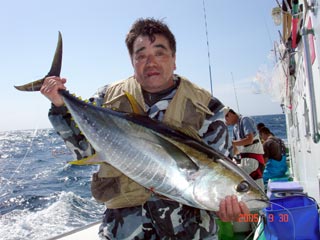 9/30銭洲 タケさん!やりましたよ(^v^) カンパチは逃しましたがキハダGET!です! 古見氏 キハダ10.2kg!