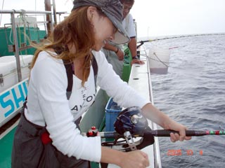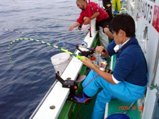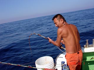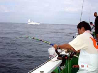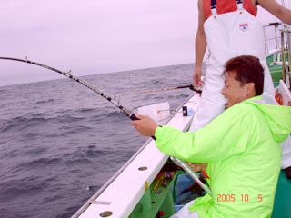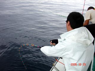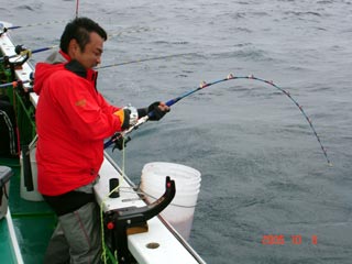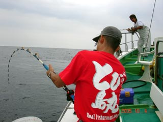10/04銭洲 相田さんのキハダとの格闘シ-ン 一生懸命です!