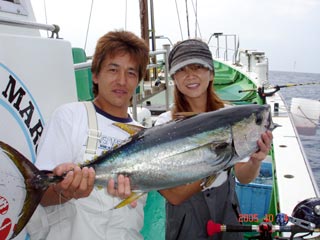 10/04銭洲 相田夫妻 右が奥さんの美鶴さん キハダ9.05kgGETしました! 次回はカンパチ釣りましょう!