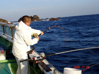 11/28銭洲 小松慎一氏の竿が…あれれれれ~ 必死に応戦する小松氏 ZENISU SPⅡ