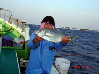 11/01銭洲 黒田眼鏡をかけての登場! カンパチキラー国嶋 カンパチ5.7kgGET! 3発やられました! 慎さん!見てますか??????? |