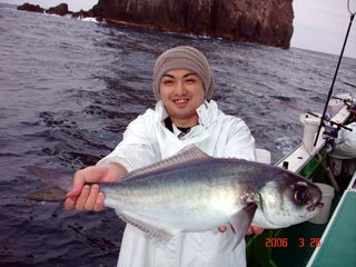 3/06藺灘波 伊豆市 SankaFishing 山下氏 シマアジ2.0kg 連ちゃんでGET! 何か特別な仕掛でも…?