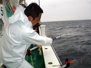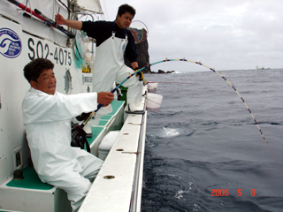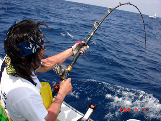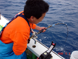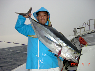 5/07イナンバ 細山氏 大型キハダと格闘中!