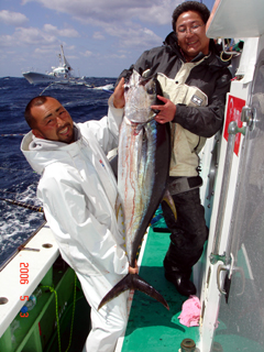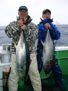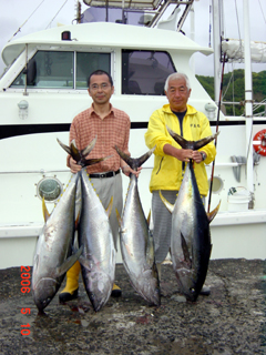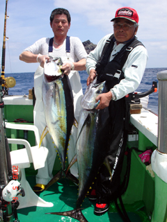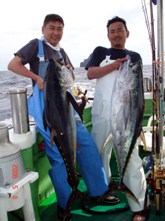 5/06イナンバ 左 石黒氏 キハダ21.75kg 右 高須氏 キハダ18.5kg 石黒氏は初!キハダ(^。^) おめでとう!