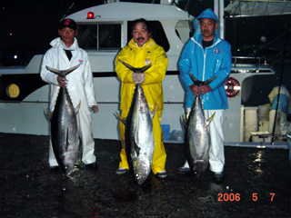 5/07イナンバ キハダをやっつけた18号船の勇者たち! 左~坂上氏 細山氏 長田氏