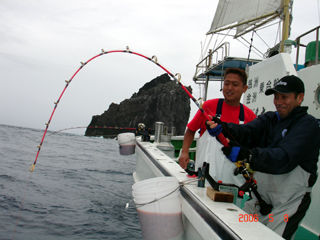 5/08イナンバ 国嶋 満副船長 Rod:フロンティア ZENISU SPⅡ リ-ル:Tica(ティカ) 20SD ツインドラグ PE12号400m入ります!