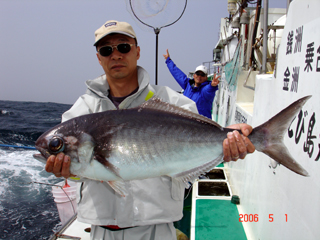 5/05銭洲 神奈川県 藤井氏 シマアジ2.75kg 美味しそうです! ピンクウイリ-にきました!