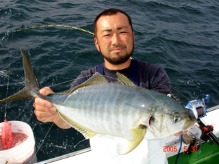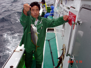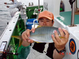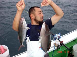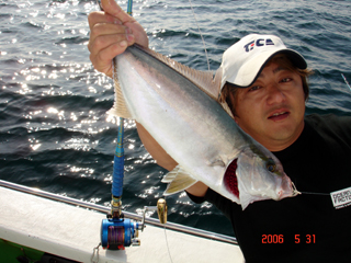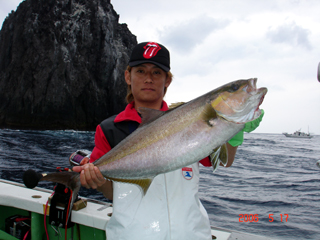 5/30銭洲 国嶋 満副船長! まいったよ(ーー;) カンパチとシマアジ??ではなく三ちゃんです(>_<)