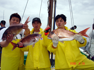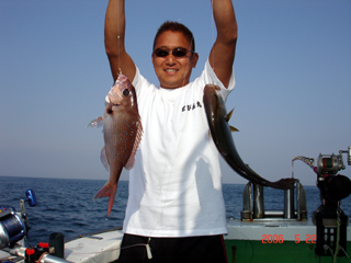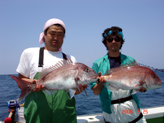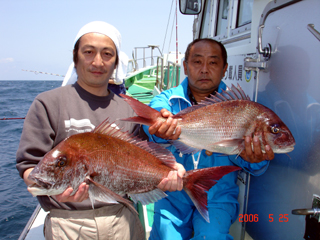 5/25銭洲 右 初☆とび島丸! 深石氏 マダイ2.35kg 左 初☆とび島丸! 飯野氏 マダイ3.10kg マダイもノッコンでます! 宜しくぅ!