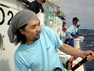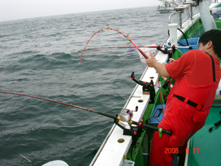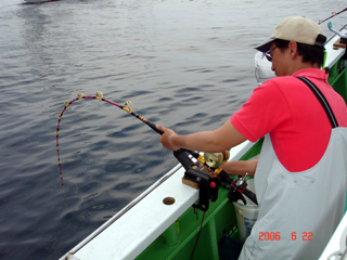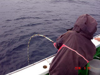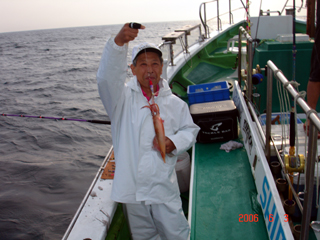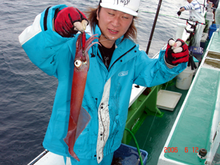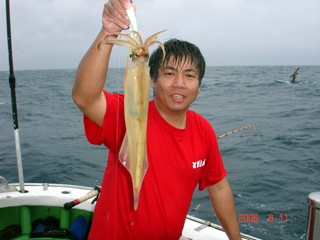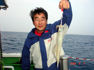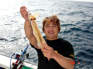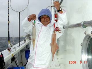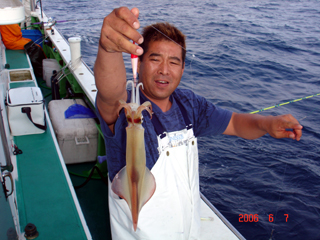 6/07銭洲 JUN 赤イカ釣りで頭の中はパニック状態(ーー;) 仕掛を絡ませてしまい、1本角でチャレンジ! 見事!GET!できました!