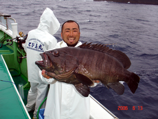 6/13イナンバ 国嶋副船長 ハタ9.3kg!ムロの泳がせでヒット! 坂上さん!見てますか???