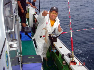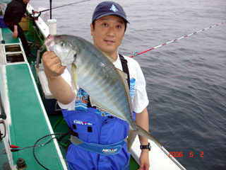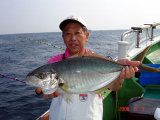 6/02銭洲 江東区 本田 博氏 初!とび島丸!シマアジGET! 1.45kgでした!お見事! |