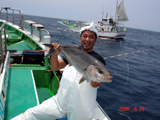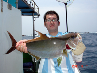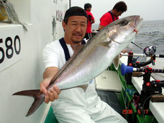 6/07銭洲 初!とび島丸!初!銭洲☆初!カンパチ☆ 才川氏 カンパチ1.5kgGET! おめでとう!