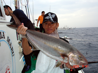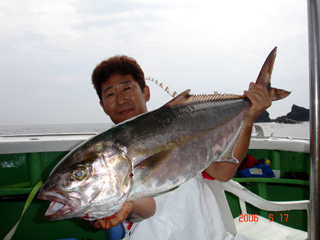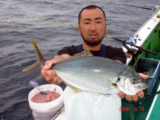 6/25銭洲 港区の棟近信司氏 カンパチ1.4kg 船中第1号カンパチをキャッチ!