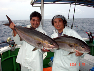 6/17銭洲 右 高橋氏 カンパチ6.6kg! 左 伊東氏 カンパチ4.2kg! 皆さん!チャンスです!