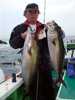 6/17銭洲 フ○ーザー 香山社長! カンパチ6-8.5kg2本! お初ですかね! (^◇^)おめでとう御座います!