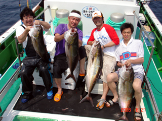 6/21銭洲 太田さん渡辺さんグループ貸切 右~柴田氏14.2kg、山本氏14.05kg、渡辺氏11kg 太田氏7.0kgです!ラッキーな一日でした!