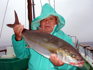 6/07銭洲 国嶋 満副船長 シマアジGET! 1.35kg ハリス8号ウイリィーの白です!