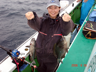6/28銭洲 トモちゃんです! 五目に気合入れてます! メジナをダブルで! (>_<) カンパチが…