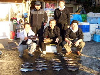 1/19トビシマ 14.7℃薄濁り 前列 チームタキグチ 小和瀬夫妻メジナ43cm 奥様 何釣行ぶりのメジナです☆おめでとう! 後列中央 (-。-)y-゜゜゜???師匠~(^◇^)