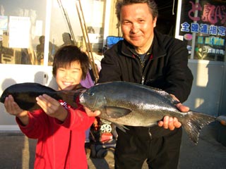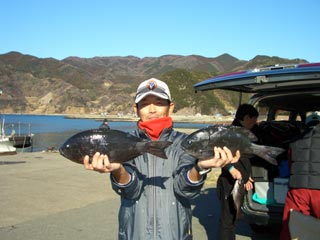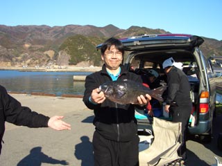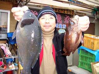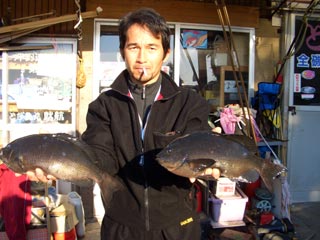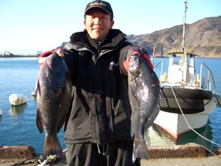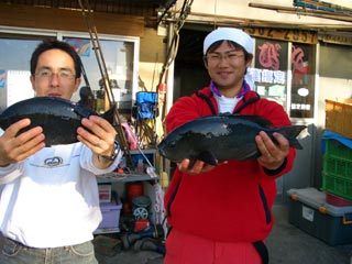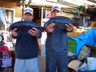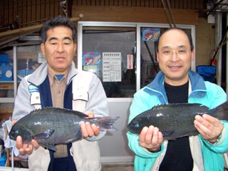 1/09トビシマ 15.6℃澄み 右 伊豆くしろ研究会井上氏 左 伊豆くしろ会 宍倉氏 メジナ40cmオーバー