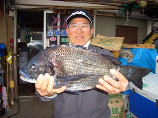 1/02中ノ島 15.2℃澄み 伊豆市土肥 植松 誉氏 メジナ43cm 40オーバー釣れれば上等! 今年も(^^♪ルンルンです! |