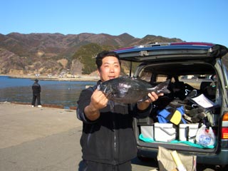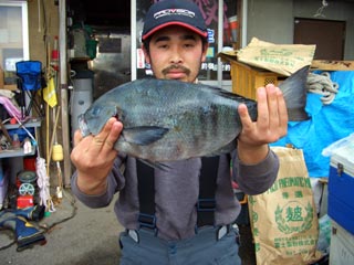 1/01トビシマ 14.4℃澄み加減 伊豆くしろ会 田村祐司氏 メジナ48cm 元旦一発!元気モリモリ! めでたい♪めでたい♪ |