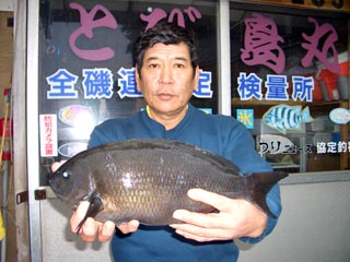2/19トビシマ 12.6℃薄濁り 年無会 道永英寿氏 メジナ40.5cm