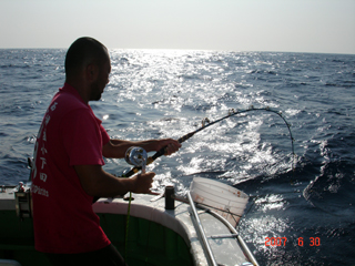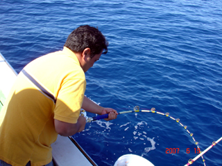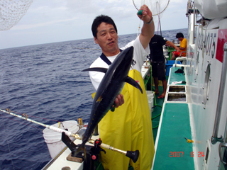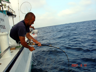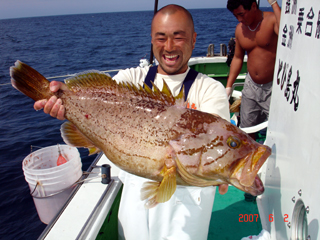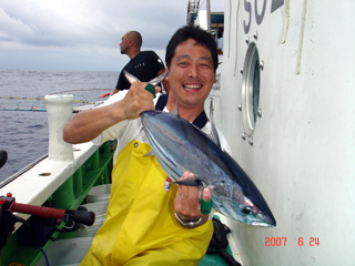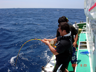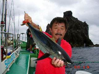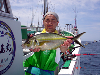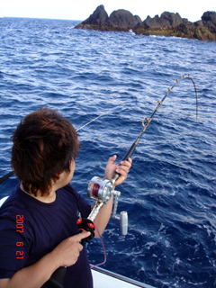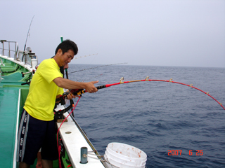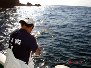 6/30銭洲 国嶋 満副船長 カンパチ釣りに集中! ロッド:TICAプロト リール:TICA T(とび島丸)-Special 2006