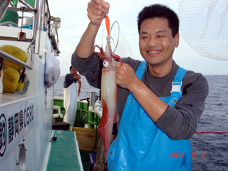 6/02銭洲 初!とび島丸☆ 海老名市 加藤さん!アカイカの竿頭です! 40分で3ハイGET(^o^)丿