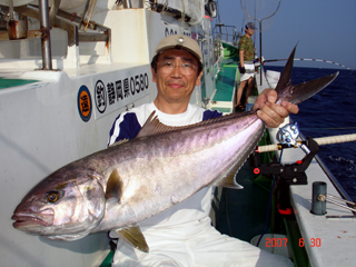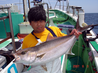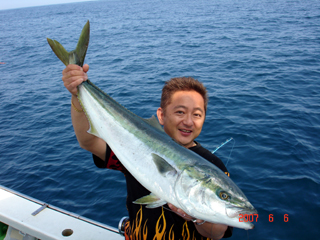 6/03銭洲 東京 伊東大輔氏 カンパチ10.7kg まだまだこれからです! 頑張ります!
