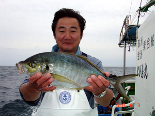 6/02銭洲 東京都 五十嵐 鉄臣氏 鋭いシャクリでシマアジ1.3kg!