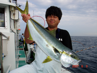 6/09銭洲 初!とび島丸!御殿場市 勝亦氏 五目狙いにヒラマサ2.5kg! 頑張りました!