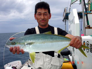6/06銭洲 サンゴ堂 須藤氏 ブリ6.5kg 鯖の泳がせでGET! 苦労して食わせました!