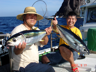 9/17イナンバ 大橋氏と伊藤店長 キハダでポーズ\(◎o◎)/!
