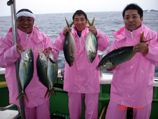 9/02銭洲 柴田氏 弦巻氏 伊東氏 カンパチ3.55-7.1kg4本 竿頭@弦巻剛氏.工房剛樹.com (^o^)V