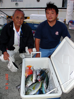 9/26銭洲 石塚氏 アリーズ佐々木氏 石塚氏の釣果です。 シマアジ2枚!泳がせメインで頑張りました! アオダイはお土産です!